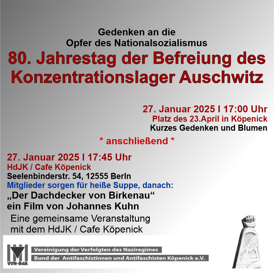 Am 23.4.2025 fand die Erinnerungsveranstaltung anlässlich des 80. Jahrestages der Befreiung Köpenicks statt.