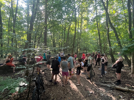 Den nächsten Kurzinput gab es am Original-Arbeiterzeltplatz „Kuhle Wampe“, an dem leider nur ein modriges Holzschild erinnert. Hier erfuhren alle Teilnehmer*innen mehr über Arbeiter*innenzeltstätte, deren Entstehungsgeschichte und die Kuhle Wampe an sich.